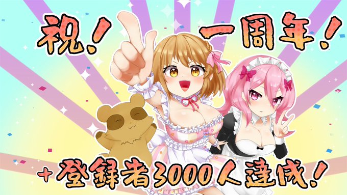 たぬちゃんのV活動1周年+登録者数3000人突破ということで勝手に描かせていただきました~~~!! 待機画面に使ってもらえてうれC😊 今後もどうなっていくかたのしみであります!! #たぬちち #たぬちゃん描いたよ