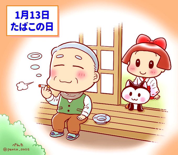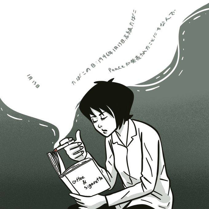 1月13日はたばこの日&ピース記念日。1946年、ピースというたばこが発売された日なんです。当時は他のたばこは4円でしたが、ピースは10本入りで7円もする高級なたばこだったんです。たばこはマナーを守ってごゆるりといっぷくしましょう〜 #たばこの日 #ピース記念日 #イラスト好きさんと繋がりたい