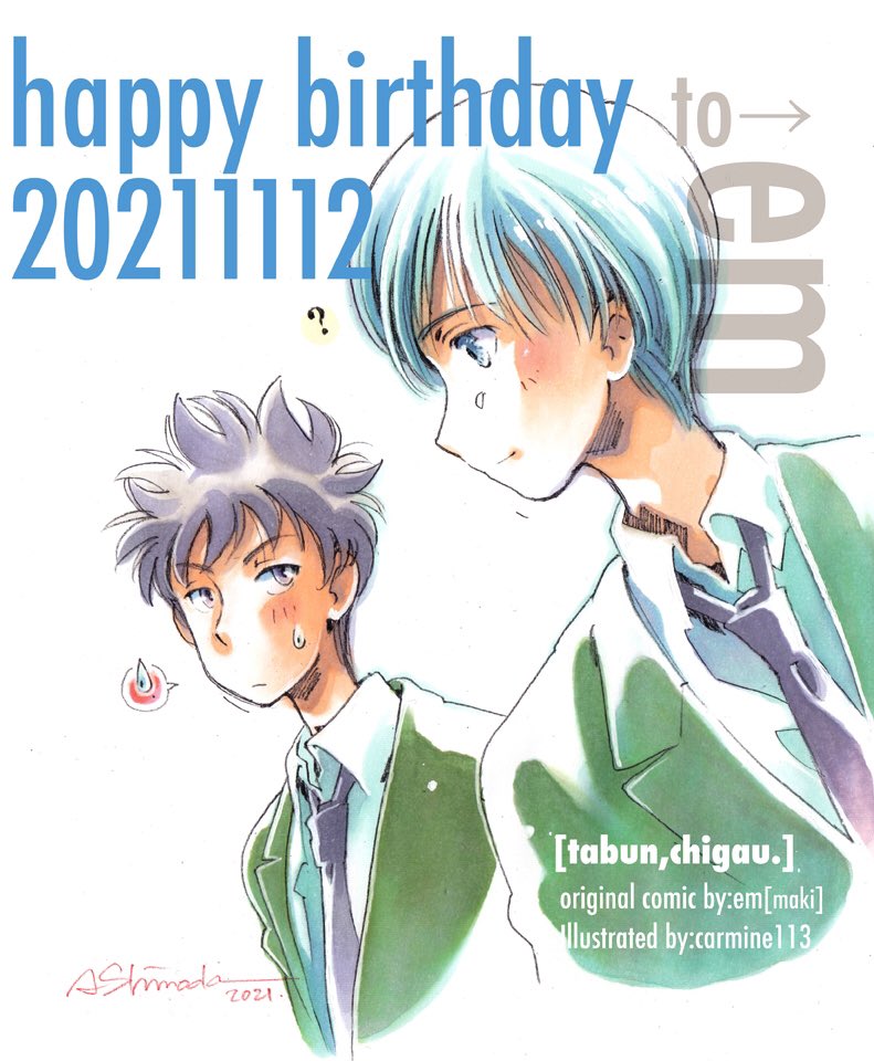 #これを見た人はよその子の画像を貼れ では、emパイセン@em_makiweb とこの 「たぶん、違う。」相澤田を釜印版で。 通称 #たぶちが の主人公ふたり こちらの漫画書籍を頒布した昨年の #九州コミティア 今年は10/30開催決定!!! 抽選に当たればfeelogで参加予定丶(°∀°)ノ✨ サテ何か作らねば💨