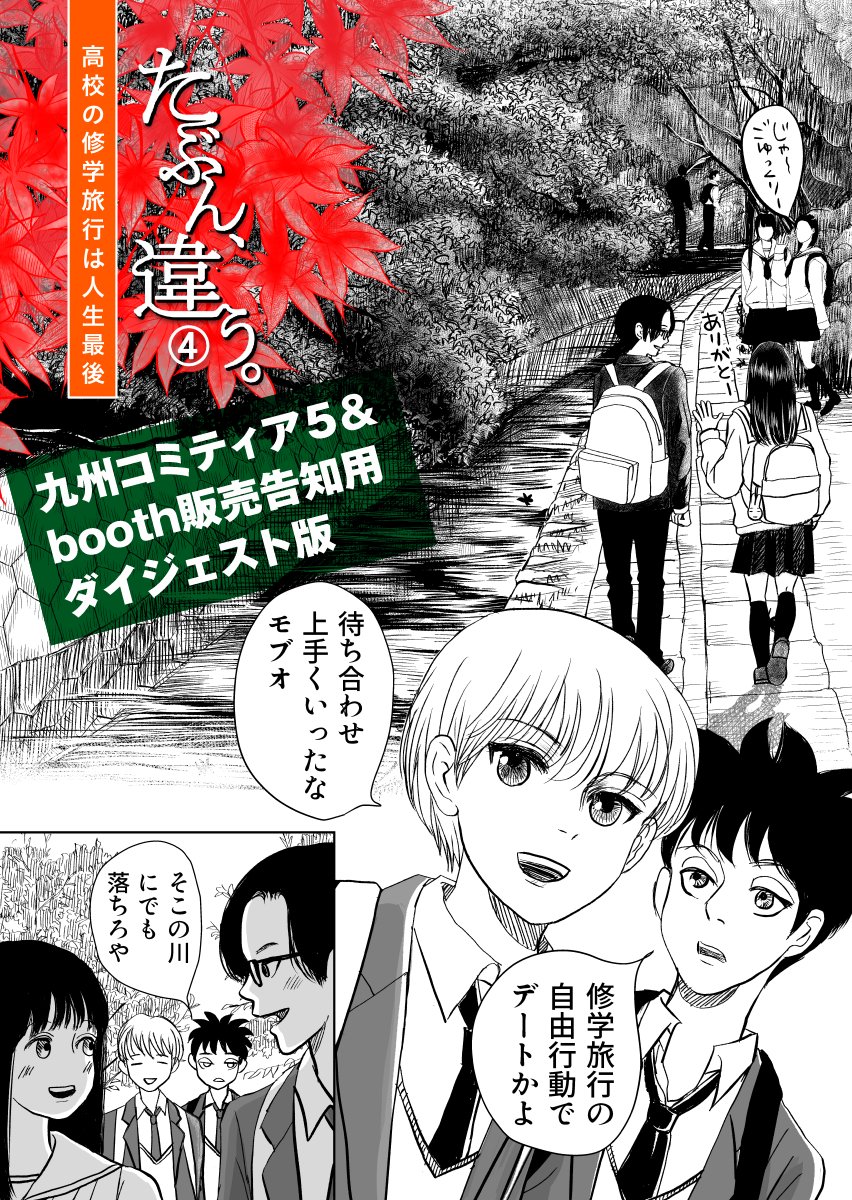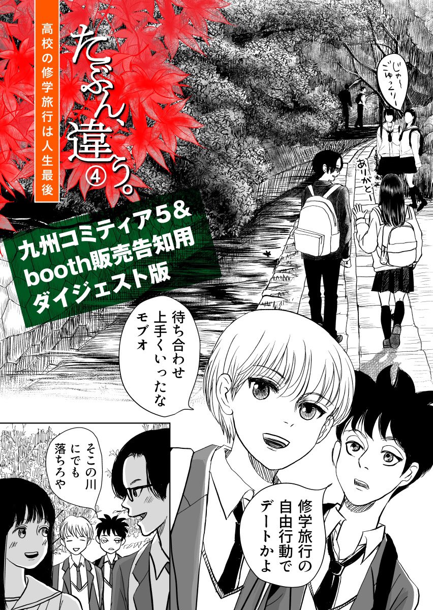 #たぶん違う 最新④話「修学旅行編」 #九州コミティア5 で「#たぶちが」初披露となる最新話ダイジェスト版。続きはコミティアかBOOTHでゲットだ! 全編ネット公開はBOOTH完売後の予定😅 pixivの予告編は1P多いw↓ pixiv.net/artworks/94738… #漫画が読めるハッシュタグ #絵描きさんと繋がりたい