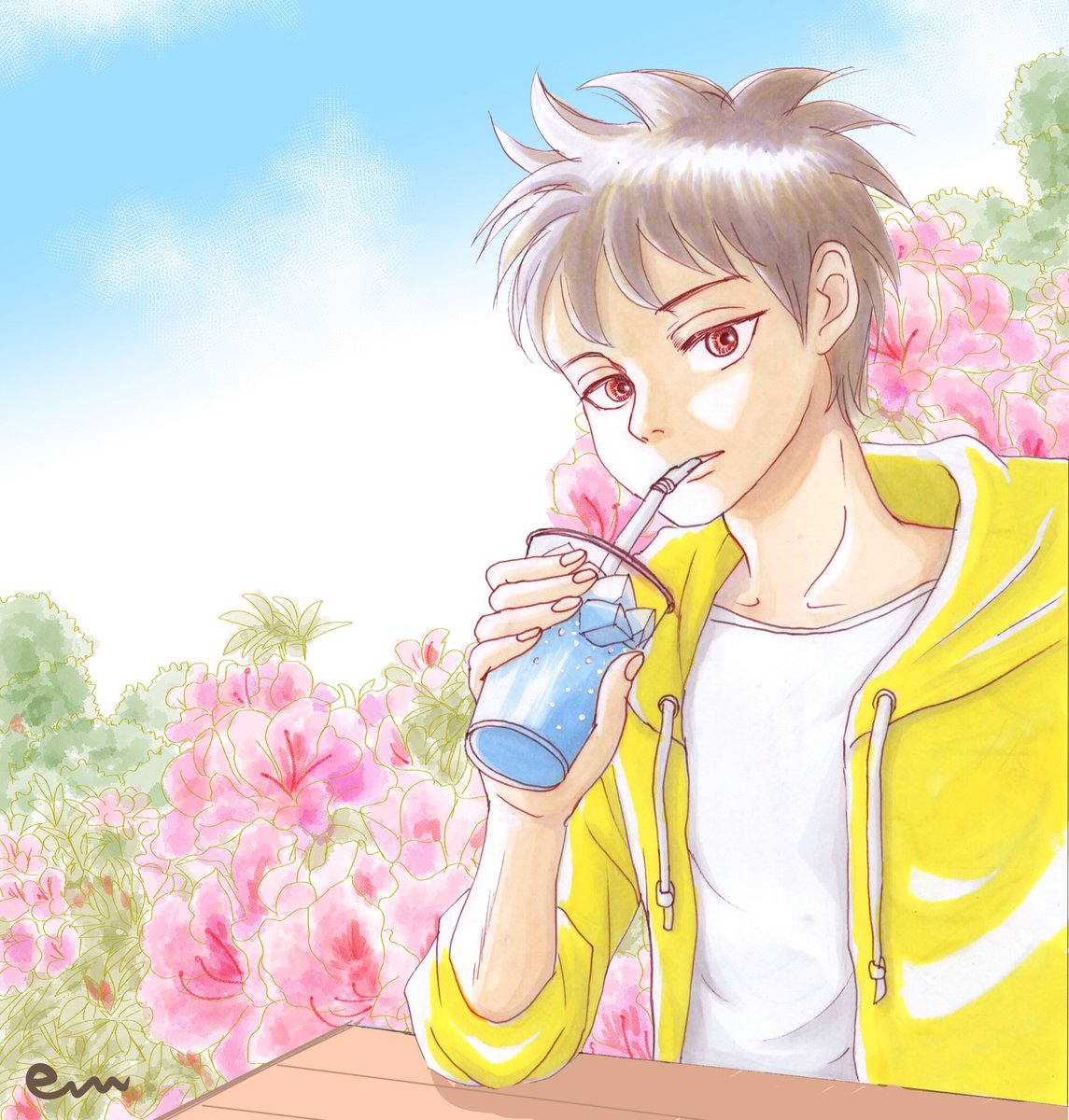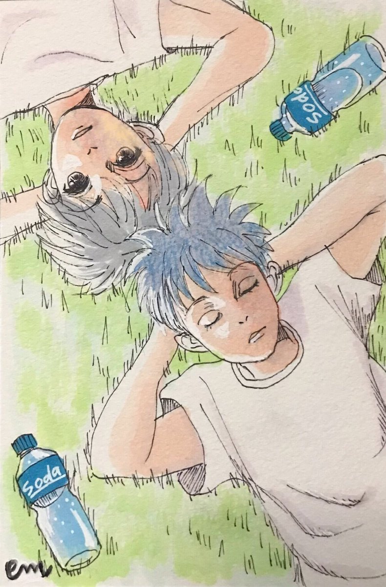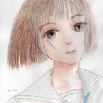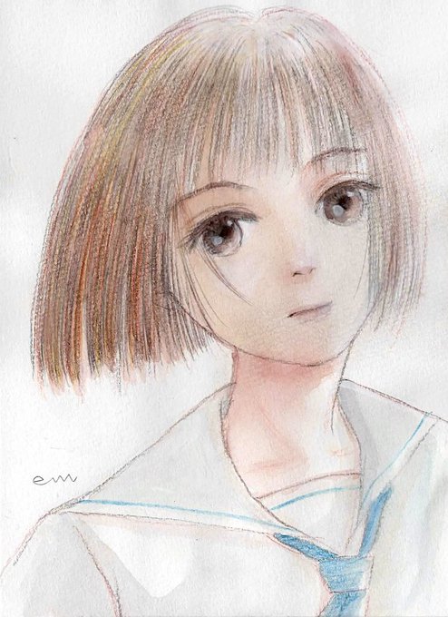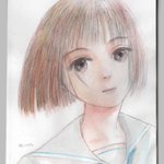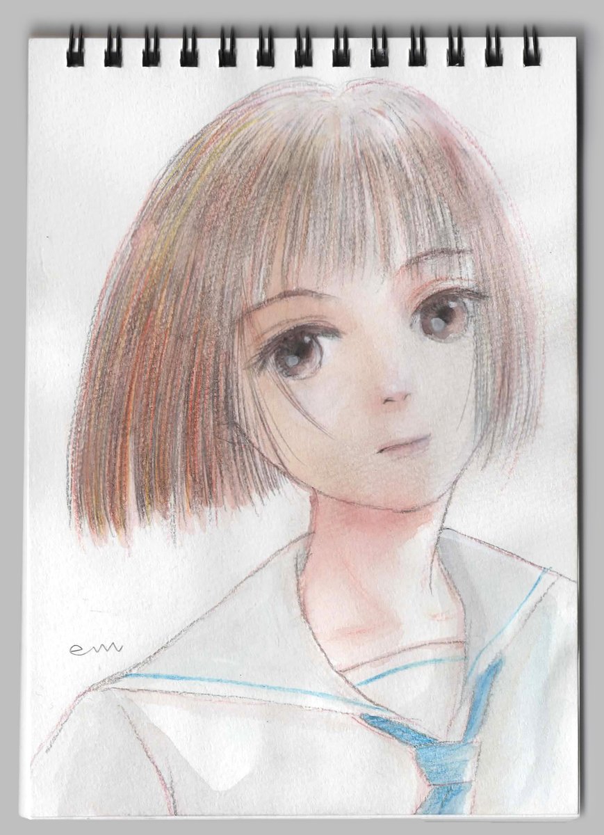 #触りたくなる髪の絵を見せて 今朝上げた、データ移行中の暇つぶしに描いたイラストが、この自作タグに合うのではないかと、少し明るくトリミングして再掲載。 #たぶちが アオハルのアナログイラストです。 twitter.com/em_makiweb/sta…