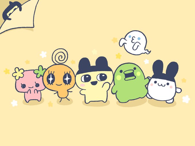 まめっち、お誕生日おめでとう!☺🎉 ひさしぶりにみんなを描いてみた。手描きなので、色ついてなくてごめん。ぬりえでもしてください。やっぱりたまごっちたちを描くのは楽しいな〜💕 #たまごっち #Tamagotchi #まめっち生誕祭 #たまごっち26周年 #まめっち #めめっち #くちぱっち #ヤスコーン