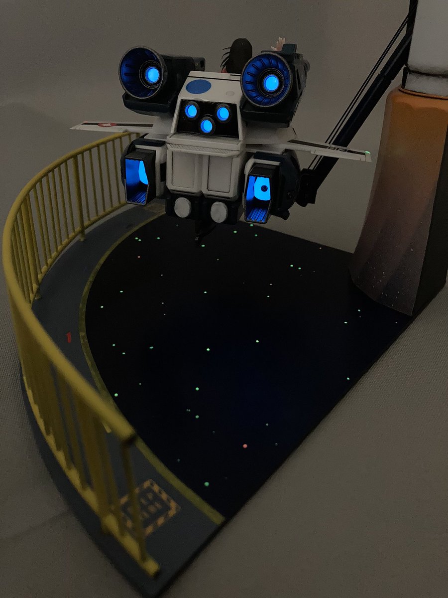 ハセガワ80周年のコンテストに応募してきました。 HPに掲載されるのに1週間くらいかかるそうです。 夜光塗料や蓄光テープであちこち光るようにしておきました(2枚目) #たまごひこーきマクロス #ハセガワ