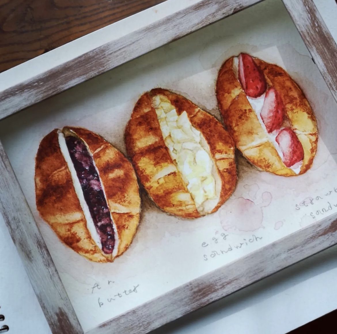 バターロールサンドのイラストです。 #水彩 #透明水彩 #パンイラス #パン #バターロールサンド #あんバター #たまごサンド #イチゴホイップ #watercolorart #illustration