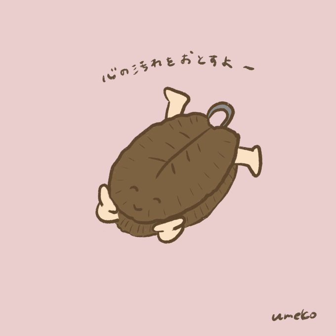 7月2日はたわしの日。1915年のこの日、西尾商店の西尾正左衛門が「亀の子束子(たわし)」の特許を取得した日なんです。今ではあまり使わないけど、昭和レトロな感じでかわいいですね。亀のかたちをしたたわしにヒモをつけてお散歩する人もいるんですって〜 #たわしの日 #イラスト好きな人と繋がりたい