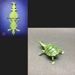 #だいたいこんな感じ見た人もやってみるw ①玉子のケースをヒートプレスして外側部を作る。 ②外側部の内側にハンドクリームを塗ってエポパテを詰め、硬化したらひっこ抜いて内部を作る。 ③手足やその他の部品を作る。部品が出来たら付けてみて自立するか確かめる。 ④塗装する。