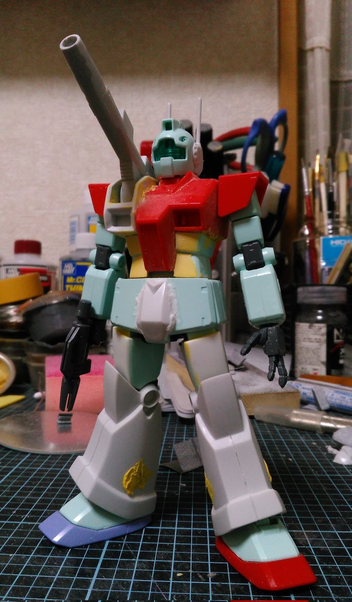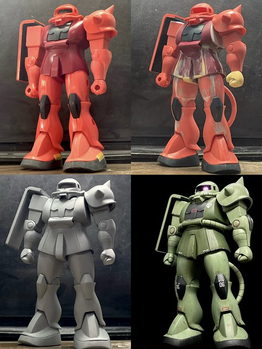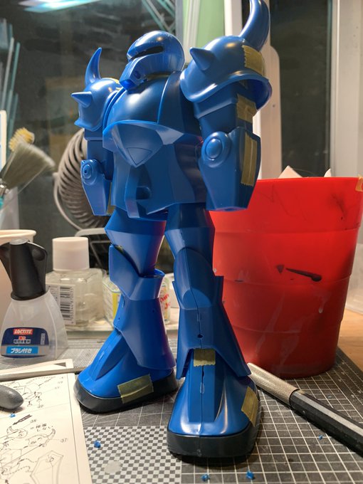#だいたいこんな感じ見た人もやってみるw 0.全面に白で塗装する 1.青でぼかし幅を広めにグラデ塗装する この時点では青は塗装粒子が荒かったり不均一だったりしてるはず 2.薄めた白でグラデ部分をふわっと重ね、粒子とグラデ幅を調整する 3.気になるところがあれば薄めた青で微調整する