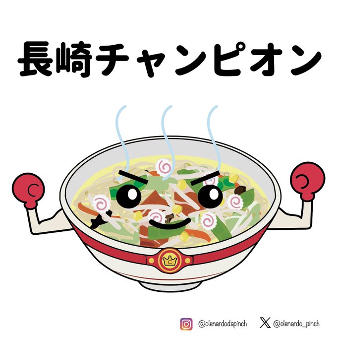 《長崎チャンピオン》 2023.08.09 麺類界の王者、長崎 #だじゃれ #駄洒落 #ダジャレ #絵 #漫画 #イラスト #manga #Illustrator #絵描きさんフォロバ100 #絵描きさんと繋がりたい #長崎チャンポン
