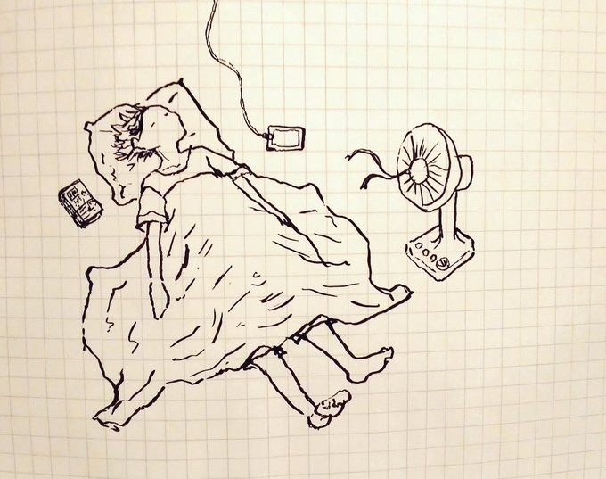 もうさ、湿度100%なんじゃないの…? この気圧に押されてる感… なんもしたくない… と思いながら、8年前に描いていた絵に着色した🖌笑 #イラスト #オリジナルイラスト #crazysweetsbear #だるい #気圧の変化に弱い