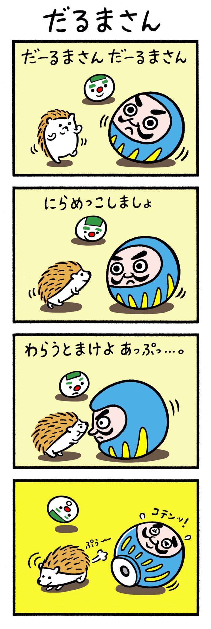 だるまさんがころん.....。毎日オムライスくん171日目。 #オムライス #キャラクター #ゆるキャラ #illustration #絵 #illustrations #illustrator #毎日オムライスくん #オムライス町 #絵描きさんと繋がりたい #オムライスくん #だるまさんがころんだ #だるまさん #後ろ向き