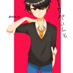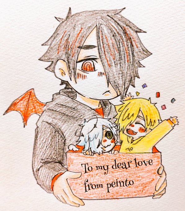 #ダークぺいんと生誕祭2022 #だーぺをすこれ #ぺんちゃんの絵本 ぺん「だーぺおめでとう!これお前の為に描いたからやる!」 ホワ「じゃあ僕は苺あげるね」 だぺ「は、はぁ...」(しょうもねぇけど、まぁこんなでも悪くないか) 大遅刻で申し訳ないですが!改めて!おめでとうイラストを描きました!!