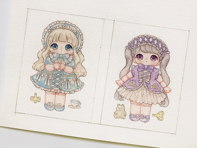 やっと2枚仕上がりました🐇🐇💦 キラキラ使ったのでいい感じになったと思います💖 額装はまた後日💦 次はドローイング???とやらを描きます✍️ #ちいさなタカラモノ展3 #アナログ絵 #コピックイラスト