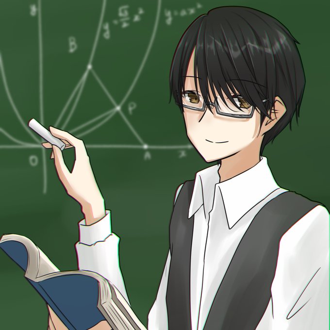 今日のテーマで、クールなバーテンさん…?って思ってた千歳でしたが、 コメントで、「高校の数学教師!」と方向転換……!! ってことで、予定より優しくなったけどいかがでしょう?? #ちとまなアート twitter.com/ManaChitose/st…