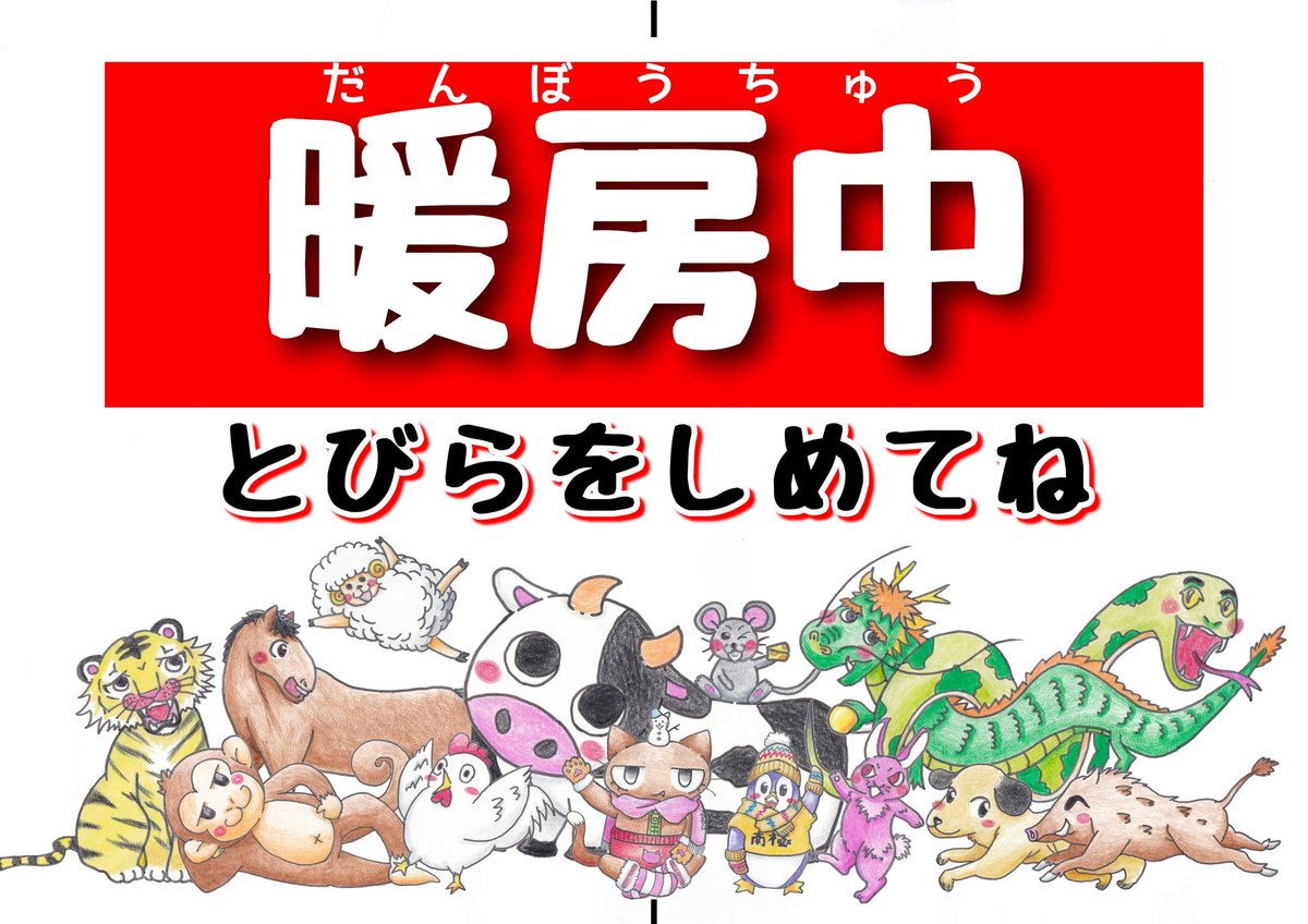 前の職場は接客業なのですが、 手動ドアな為、閉めてもらえるようにイラストポップを作成 今回は暖房時のみ。冷房は夏までに予定。 干支+ちゃっく猫とペンギンです。笑 オリジナルで作れますので、ご依頼ある方はDMよりお願い致します。 #ちゃっく猫 #絵描きさんと繋がりたい #芸術同盟