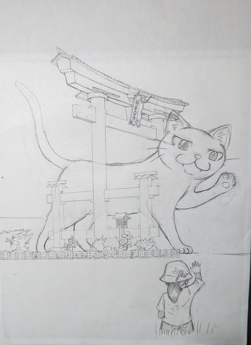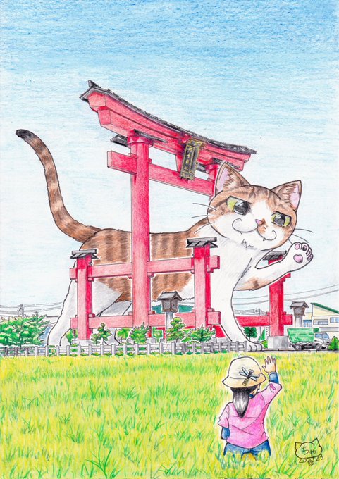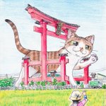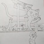 新潟県弥彦村×巨大猫計画、 オリジナルイラスト完成しました。 「弥彦村大鳥居と巨大猫」 絵専用アカウントで下描きから出してますので、よろしければご覧下さい。 @ekakuchakkuneko 【大鳥居Google検索🔗】 g.co/kgs/99SHpd #ちゃっく猫 #弥彦村 #絵描きさんと繋がりたい #芸術同盟
