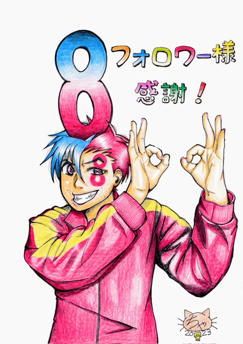 超遅くなってしまいましたが、 800フォロワー様、 ありがとうございます😆感謝です!イラストを描きました。 900フォロワー様イラストも描きます! 「8は横にすると∞(無限)だぜ男登場」 #ちゃっく猫 #絵描きさんと繋がりたい #芸術同盟