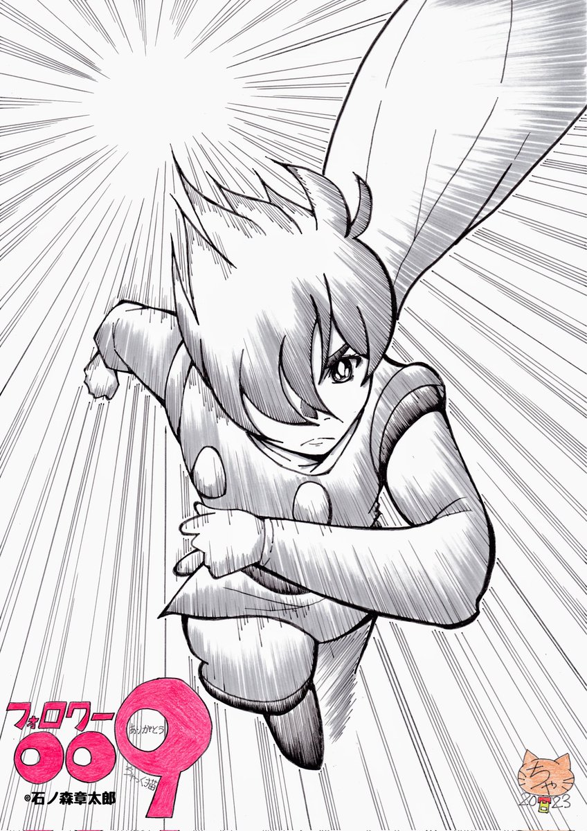 またまた超遅くなってしまいましたが、900フォロワー様、 感謝感激雨あられ😋 イラストを描きました。 900という事で、石ノ森章太郎先生の「サイボーグ009」より、 島村ジョー!加速装置!900ありがとう! #ちゃっく猫 #絵描きさんと繋がりたい #芸術同盟
