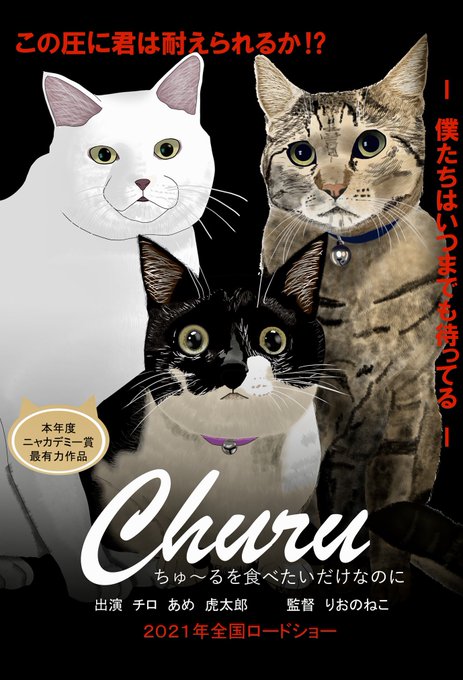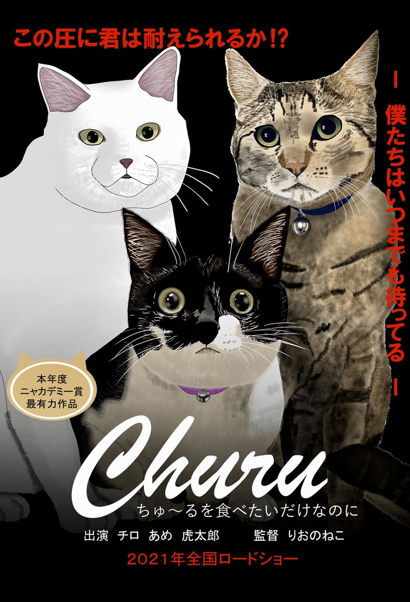 映画「Churu -ちゅ~るを食べたいだけなのに-」に、ウチのニャンズが出演します。🎬w ポスターできたから、みてくださいっ😆✨w #イラスト好きさんと繋がりたい #猫好きさんと繋がりたい #絵描きさんと繋がりたい #アトリエの系譜 #ちゅ~る