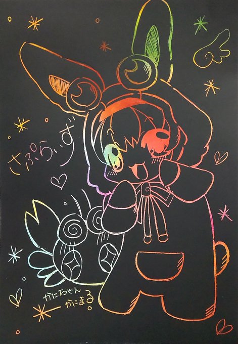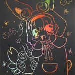 🍫さぷらいず🐰 スクラッチアートでちょこらび描いてみました(*´ω`*) 今日はアイスクリームの日なので。アイスクリームを真ん中に! #ちょこらび #ちょこらびギャラリー #アイスクリームの日 #スクラッチアート