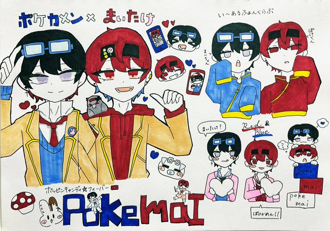 おもち(@__x_x__77)との合作です! 🍫軍:おもち💙 🐰軍:我 ⚠︎タップ推奨!! #ポケカメン描いたぞ #ゆぺいんと #ふ絵 #まいたけ絵本 #かにちゃんの絵本 #さくらくんの絵本 #ちょこらび #ちょこらびギャラリー