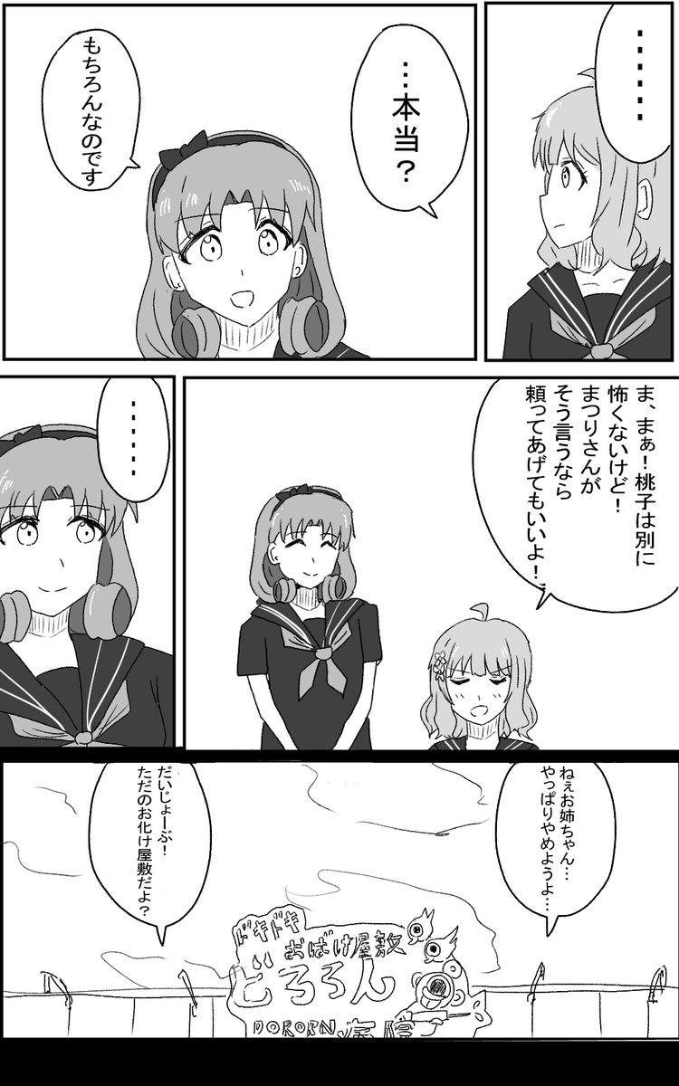 現代伝奇ホラー、まつりと桃子の撮影裏妄想漫画です(1/2) どーしても姉役徳川まつりが見たい 最後の一斉投票 #エンドレスびゅーり砲ナイト は2月27日20時~24時!【コアタイム 21:30】 #ミリオンキャスティング #プリンセス姉モード #ちょっとお姉ちゃん