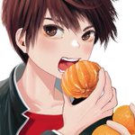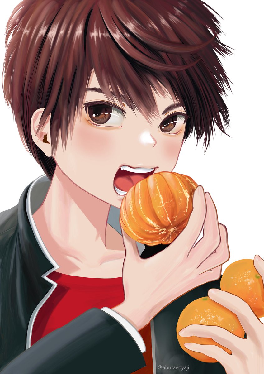 「みかんはな、丸ごとかぶりつくのが男らしいんだよ」 みかん大好きなコタローくんを描きました。 ところで、咲ちゃんの身代わりに和装花嫁姿になったコタローの美しさ艶やかさにトゥンクしちゃう回はいつですか? #ついなちゃんフラクリ