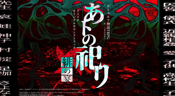 #つきめぐり公式アナウンス この度、なんと当サークルのCOC非公式オムニバス作品群「プロトコルA」、COC非公式シリーズ作品集「コードD」の主題歌の製作が決定しました! 歌唱をSennzai様、作曲をsatella様、Powerless様に依頼させて頂きました!(ありがとうございます::) s22y9zf1.fanbox.cc/posts/4780612?…