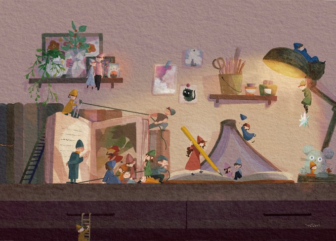 『みちしるべ』 本は色々なところへ連れて行ってくれる、という思いで描きました😌📚 𖡼.𖤣𖥧𖡼.𖤣𖥧𖡼.𖤣𖥧𖡼.𖤣𖥧𖡼.𖤣𖥧𖡼.𖤣𖥧𖡼.𖤣𖥧𖡼.𖤣𖥧𖡼.𖤣𖥧 いよいよ明日から #つくしのブックカバー展 ! ◆ 大阪 枚方T-SITE 蔦屋書店4F ◆1/27(金)〜2/2(木) 10〜19時 tsukushi-team.com/event/tsukushi…