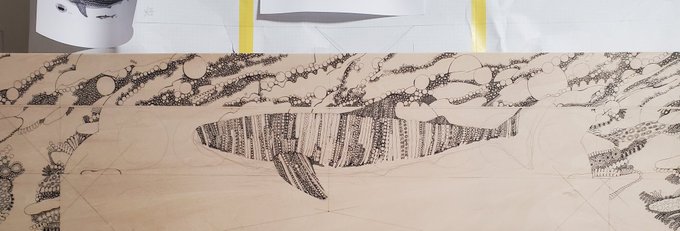 進捗報告。9月に名古屋で開催する「つくしの半年大作展」に向けて描き進めています。しばらく所用であまり進められなかったので、これからどんどんガツガツ描き進めなければ。少し焦り始めた6月。50号のパネルにペンで描いています。#つくしの半年大作展 #ペン画