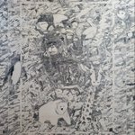 つくしの半年大作展に出品していた作品を現地で撮影していただいたもの。照明の関係で少しオレンジ。50号のパネルに直接ペンで描きました。なかなかスマホの小さな画面だと見にくいですかね。またいずれどこかで実際に見ていただく機会を作りたいものです。 #つくしの半年大作展 #ペン画