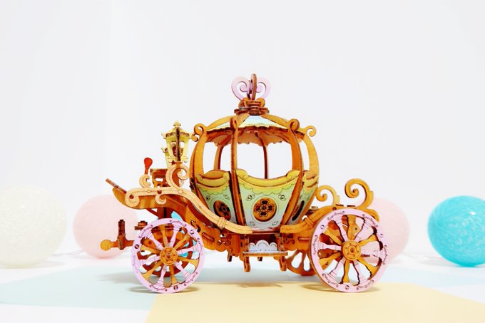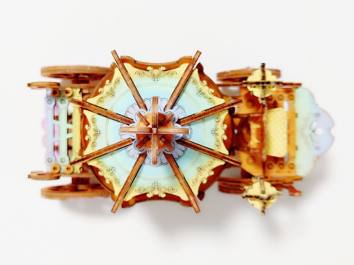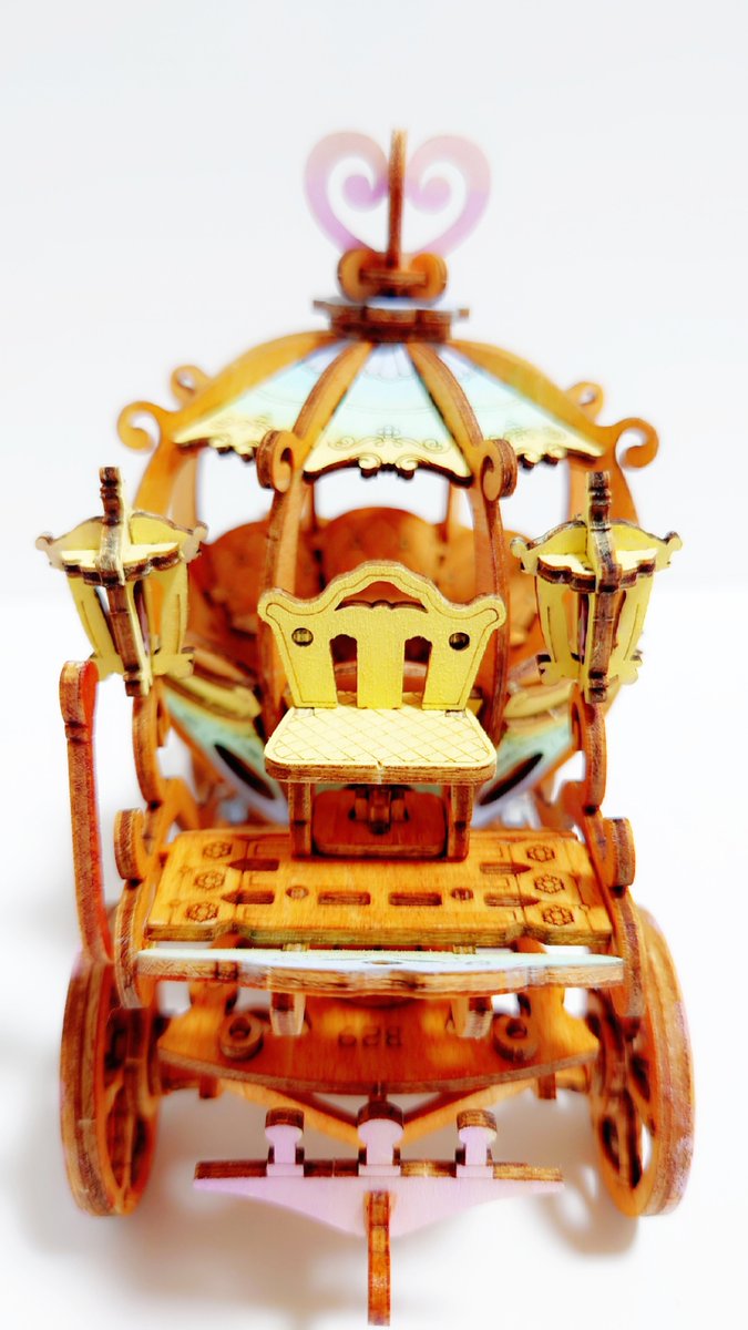 Robotime社製ウッドパズル 『馬車』完成しました✨ 色はアクリルガッシュ7色と、ニスで塗ってます。 私の思いつきで、数名巻き込んでリモート制作会したんだけど、みんなでやるのすごく楽しかったのでオススメです! ありがとうございました!! #つくるんです #薄荷さんとつくるんですつくったんです
