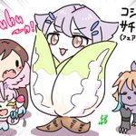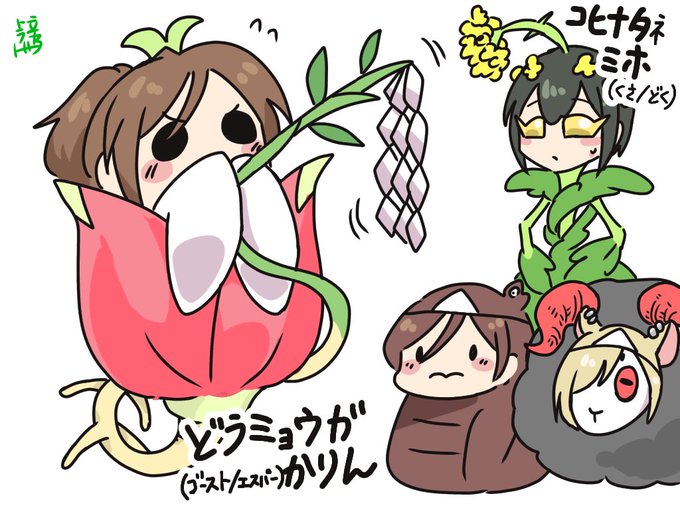 道明寺歌鈴さんと、小日向美穂さん、佐久間まゆさんのクリーチャーを作りました。愛おしい我が家、暖かいおうち #つじのこ #どうミョウガかりん #コヒナタネミホ #ササグママユ #しらさかこうメェ〜 #モリクボア #カガヤキノコ