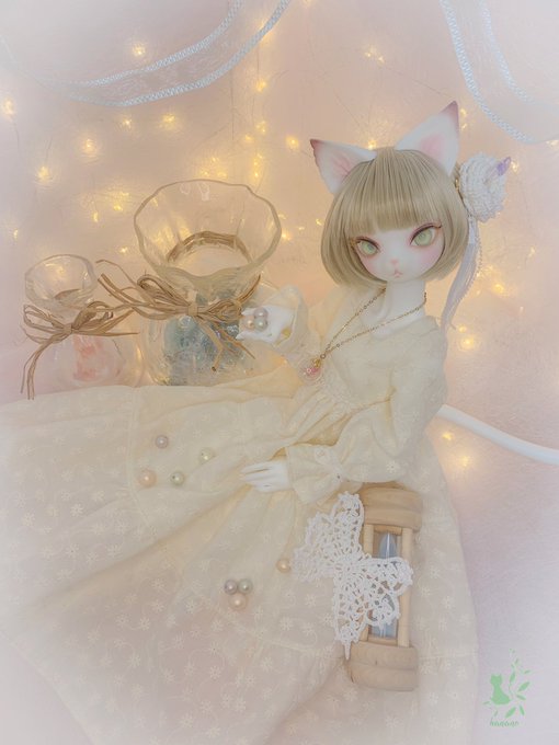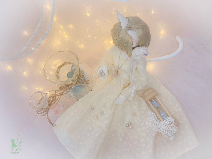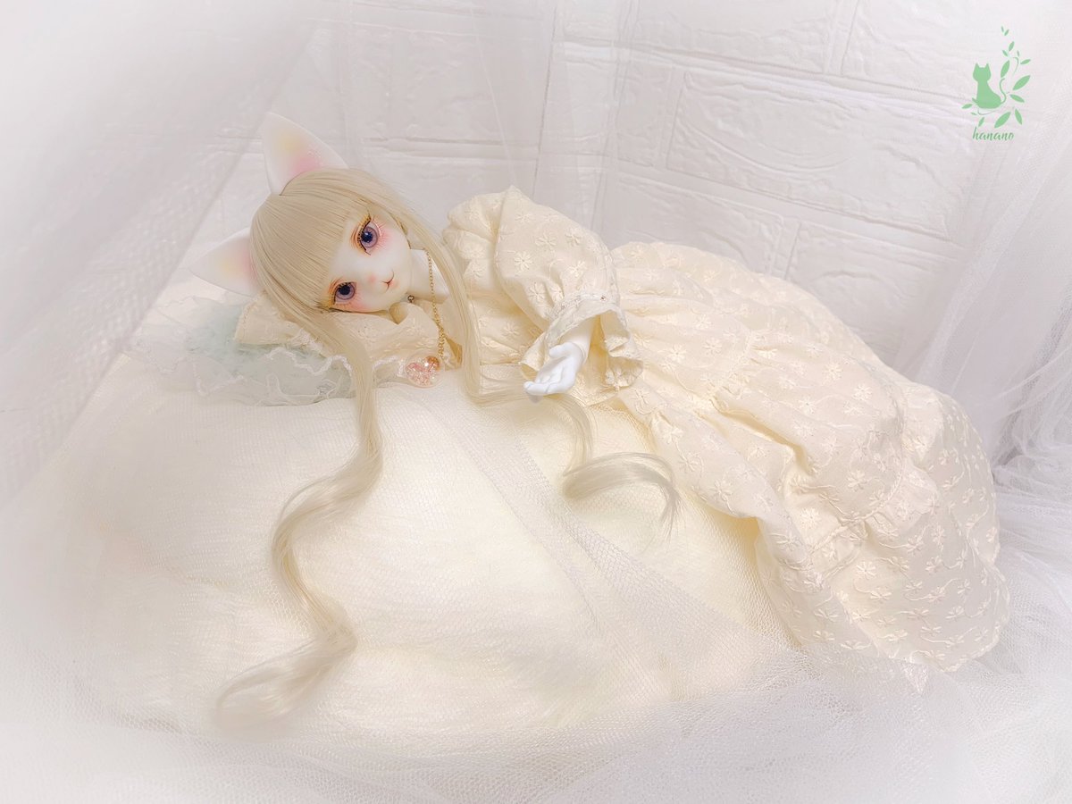 #今夜のドール撮影120分一本勝負 お題{さげる} 目線を下げると 白猫さんが 暖かい夢へ誘うよう𓂂𑀀 #つぼみ服 #DearMine #うちのこかわいい #うちのこに癒され24時間 #ドールオーナーさんと繋がりたい