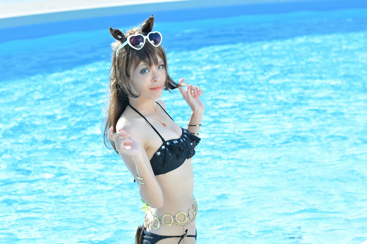 【cos】 魔法ー?! ーーバブリーなんとかに、アタシも行く!アタシも行くわー! スイープトウショウ(水着):めろ牛 Photo:おささん #麗yers #つま恋リゾート彩の郷 #ウマ娘になってしまいました #スイープトウショウ #コスプレ #めろしコス