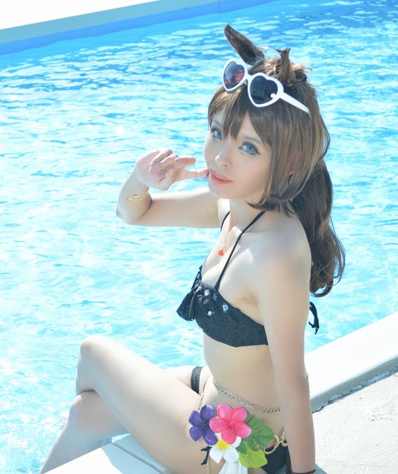 #麗yers #つま恋リゾート彩の郷 #ウマ娘になってしまいました #マルゼンスキー #コスプレ 「せっかくの夏だもの! フィーバーするっきゃナイナイ♪」 マルゼンスキー(水着)、、、レン カメラマン、、、おささん