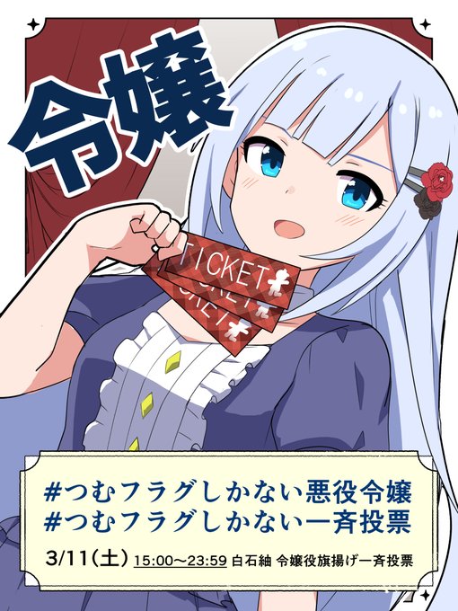3月11日(土)15時~より、第2回投票【悪役?令嬢】の開始に合わせて「令嬢」紬ちゃんの一斉投票を実施しますのでよろしくお願いします~ #ミリオンキャスティング #つむフラグしかない悪役令嬢 #つむフラグしかない一斉投票