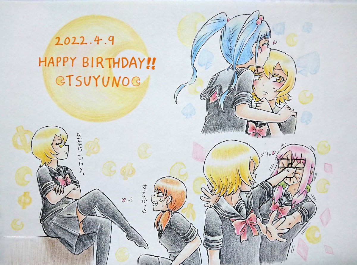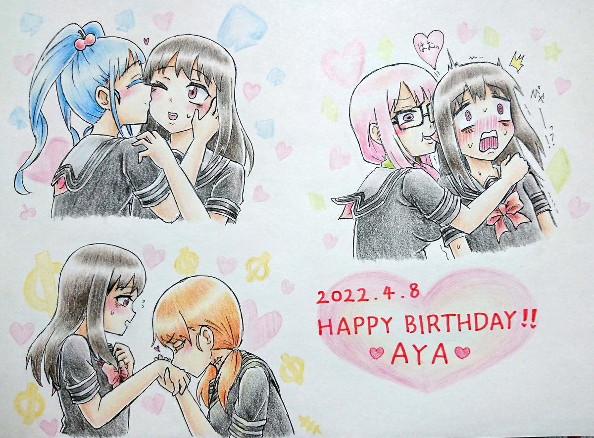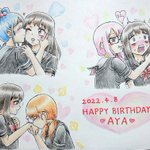 つゆあや誕絵まとめ🌘♥️ 皆からのKISS♥️のプレゼント(奴村さんにじみん以外受け取ってないけどwごめん潮井…w)と、ラストは幸せなつゆあやウェディング(^q^) #魔法少女サイト #朝霧彩生誕祭2022 #奴村露乃生誕祭2022 #つゆあや