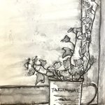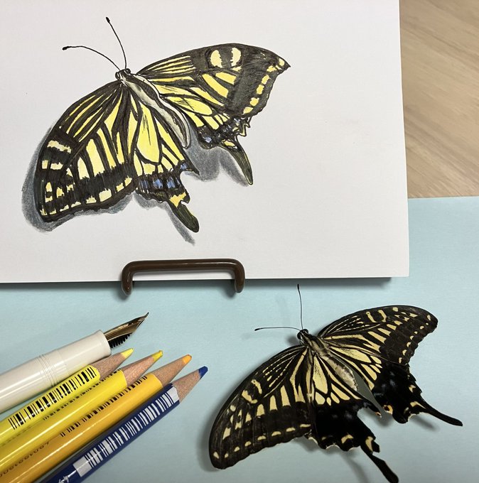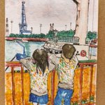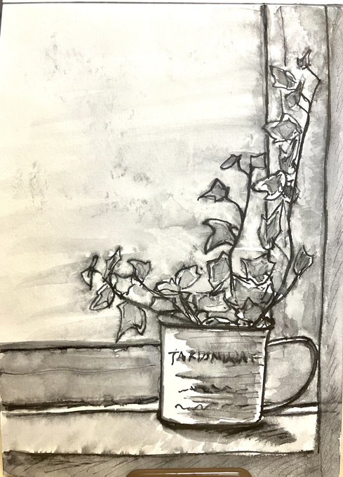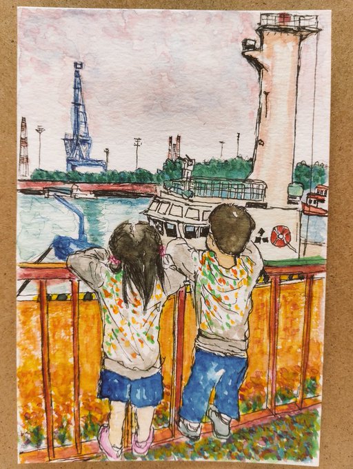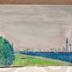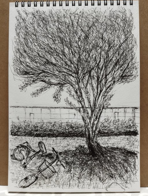 昨日の庭スケッチ 。(木と自転車) 夕方色入れていて帰宅した旦那に見てもらってたら🎨自分で描き始めて(色んな所足していた)ここどこ? みたいな仕上がりに。。夜設定で カモメ飛んでるし、(柴崎先生ので真似らしい) 乗っ取られ感満載ですが…載せます。 #つらら庵お散歩スケッチ #絵 #風景画