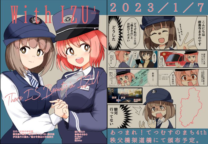 1/7-1/8オンラインイベント「あつまれ!てつむすのまち 4th」にて、鉄道むすめ新刊(電子版)『With IZU』を頒布いたします。 まきの・なみ両氏と「伊豆」を掘り下げた内容です。 よろしければどうぞご覧くださいませ。 ※イベント参加はこちらから↓ pictsquare.net/p6sphiod3tw99d… #てつむすのまち