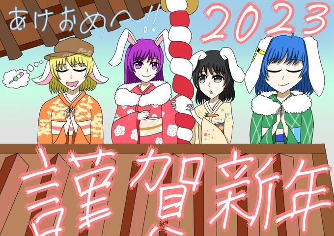 #東方Project #鈴瑚 #清蘭 #鈴仙・優曇華院・イナバ #てゐ #謹賀新年 #イラスト あけおめです(๑•̀ㅁ•́ฅ✨ 今年は兎年です、皆さん、今年もよろしくお願いいたします( * ॑꒳ ॑*)⸝⋆。✧♡