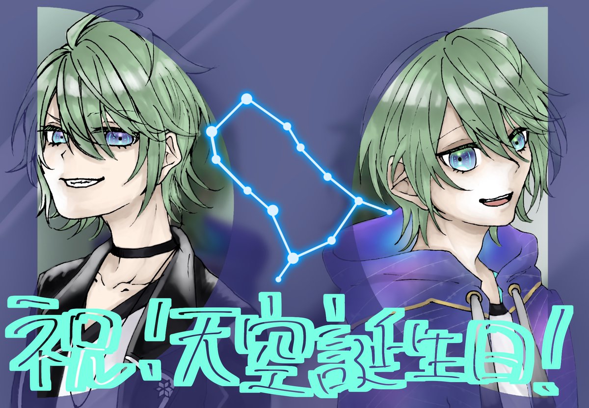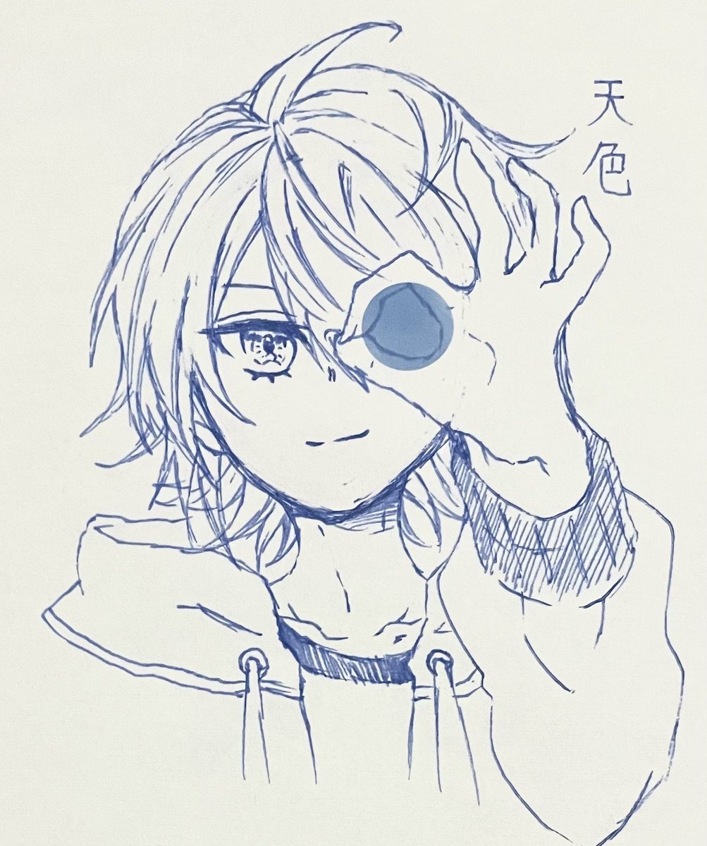 空くん描いてる途中でお気に入りのフレクションボールペンのインクが切れてしまったのでペン途中から変わっちゃってるけど我ながらいいセンスしてると思うので見てくれ 天色と空色を覗く天くん空くん #てんくうあーと twitter.com/chi_we_ko/stat…