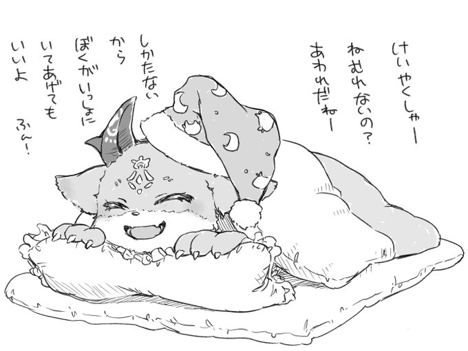 契約者…???……起きてる…? トイレ……行きたくない?? 特別に着いてってやろうか?? べ、別に怖くて着いてきてほしいとかじゃ無いぞ?ほんとだぞ #でびるさまのせりふ #でびるさまにささげるえ
