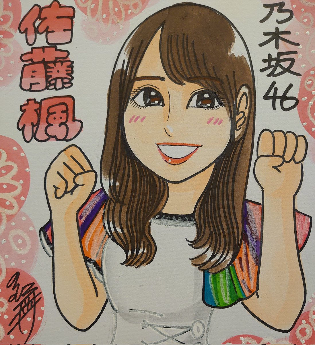 ドン! 乃木坂ちゃんで〜す(*^^*) でんちゃんHAPPY⊿Birthday(*^^*) #似顔絵 #乃木坂46 #佐藤楓 #でんちゃん #佐藤楓生誕祭 #佐藤楓生誕祭2022 #乃木坂46好きな人と繋がりたい #乃木坂イラスト