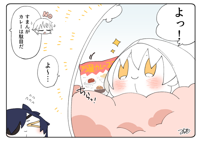 とある本丸のひと休み526「ちらっ・伊達もちの本丸」 #とある本丸のひと休み カレーフェアのチラシをちらちらするもちつるくん…!🍛 カレーうどんはNGのもちつるくんだけど、もしかしたら普通のカレーなら…!と期待の眼差しです✨✨ twitter.com/333_mitch/stat…