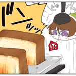 とある本丸のひと休み509「トースト🍞・三条もちの本丸」 #とある本丸のひと休み 焼けると飛び出るタイプのトースターを使っている三条もちの本丸。焼いているのを知らずに近くを歩いていたもち切丸が被弾しました…!😂🍞 twitter.com/333_mitch/stat…