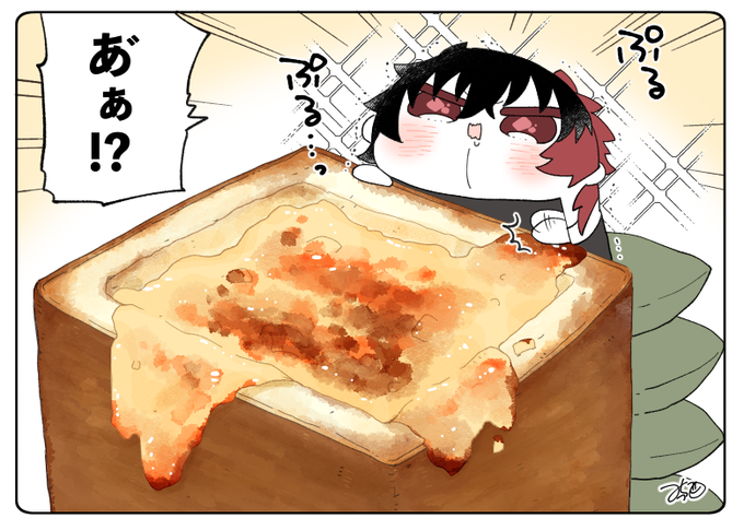 とある本丸のひと休み510「トースト🍞・もちひぜの本丸」 #とある本丸のひと休み 一斤まるまる使ったグラタントースト…!!夢のような食べ物にもちひぜくんが逆ギレしています😂😂 twitter.com/333_mitch/stat…