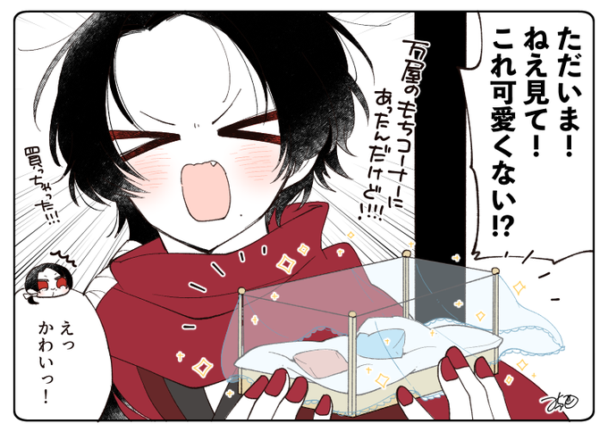 とある本丸のひと休み517「お布団事情・もちきよの本丸」 #とある本丸のひと休み 万屋から帰った清光くんが手にしていたのは、もち用天蓋付きベッド😳✨ もちきよくんのお布団がレベルアップしました!🆙🆙🆙☺️🌸🌸 twitter.com/333_mitch/stat…