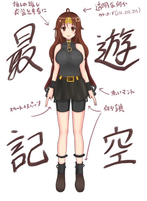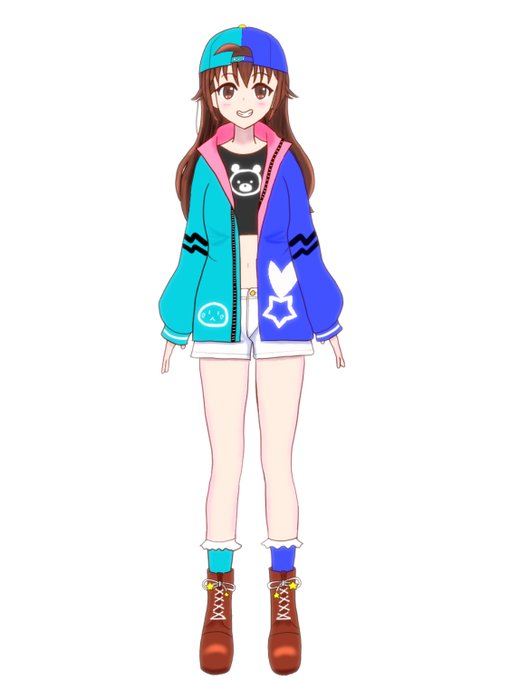 求む!デザインセンス…!(╹ᆺ╹๑) カジュアル×近未来な感じにしたかった! 脛と二の腕辺りの謎の出っ張りにだいぶ苦戦しました。 え?これからの季節これは暑いって…?( •́ .̫ •̀ ) #ときのそら新衣装予想