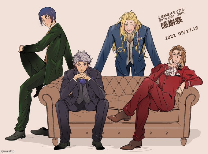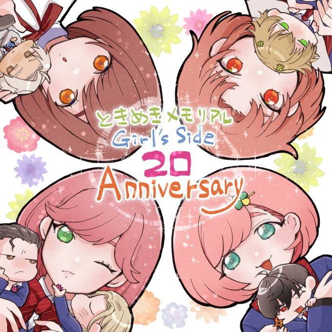 ときめきメモリアル Girl's Side 感謝祭開催おめでとうございます! 明日の昼の現地組ですが ひとまずお祝い絵を〜 天才芸術家たちがどう絡むのか楽しみすぎたので! 色サマとくーちゃんが自由にして設楽先輩が怒って夜ノ介さんがまとめ役?どうなるかな〜 #ときメモGS20周年 #girlsside