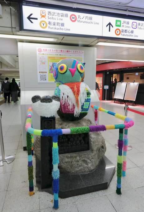[編みふくろう → いけふくろう] 通常へ JR池袋駅・東口方面にある「いけふくろう」を編み装飾していましたが期間2022/1/31迄の為、 いつもの「いけふくろう」になっています。 いつもとは違う「編みふくろう」バージョンを楽しんで頂きありがとうございました! #としま編んでつなぐまちアート